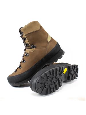 Охотничьи ботинки HL by DIOTTO Nebraska изготовленные из цельного куска водоотталкивающего коричневого нубука с минимальным количеством швов и оснащен дополнительно резиновой лентой по низу ботинка для предотвращения повреждений от курума, острого льда и камней.