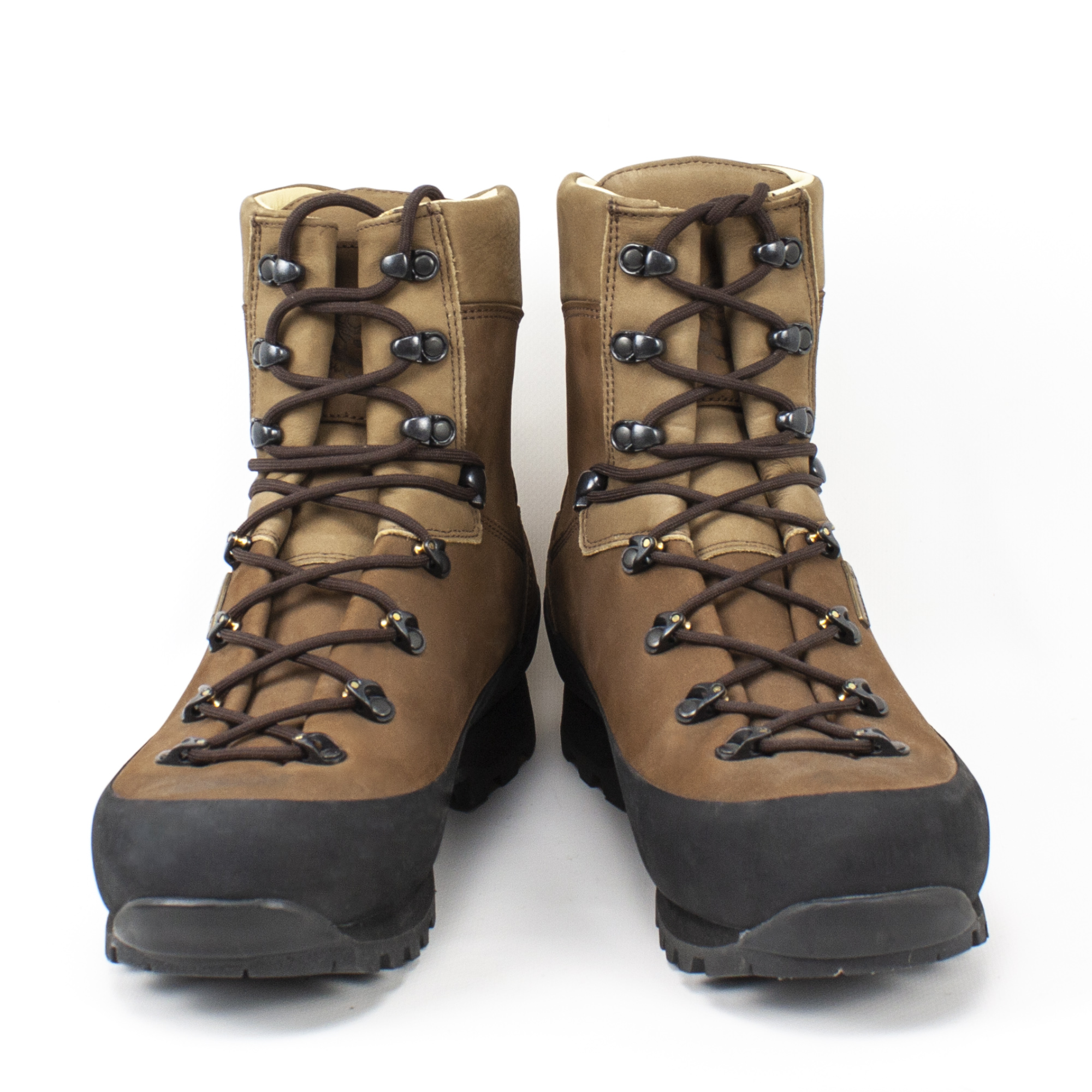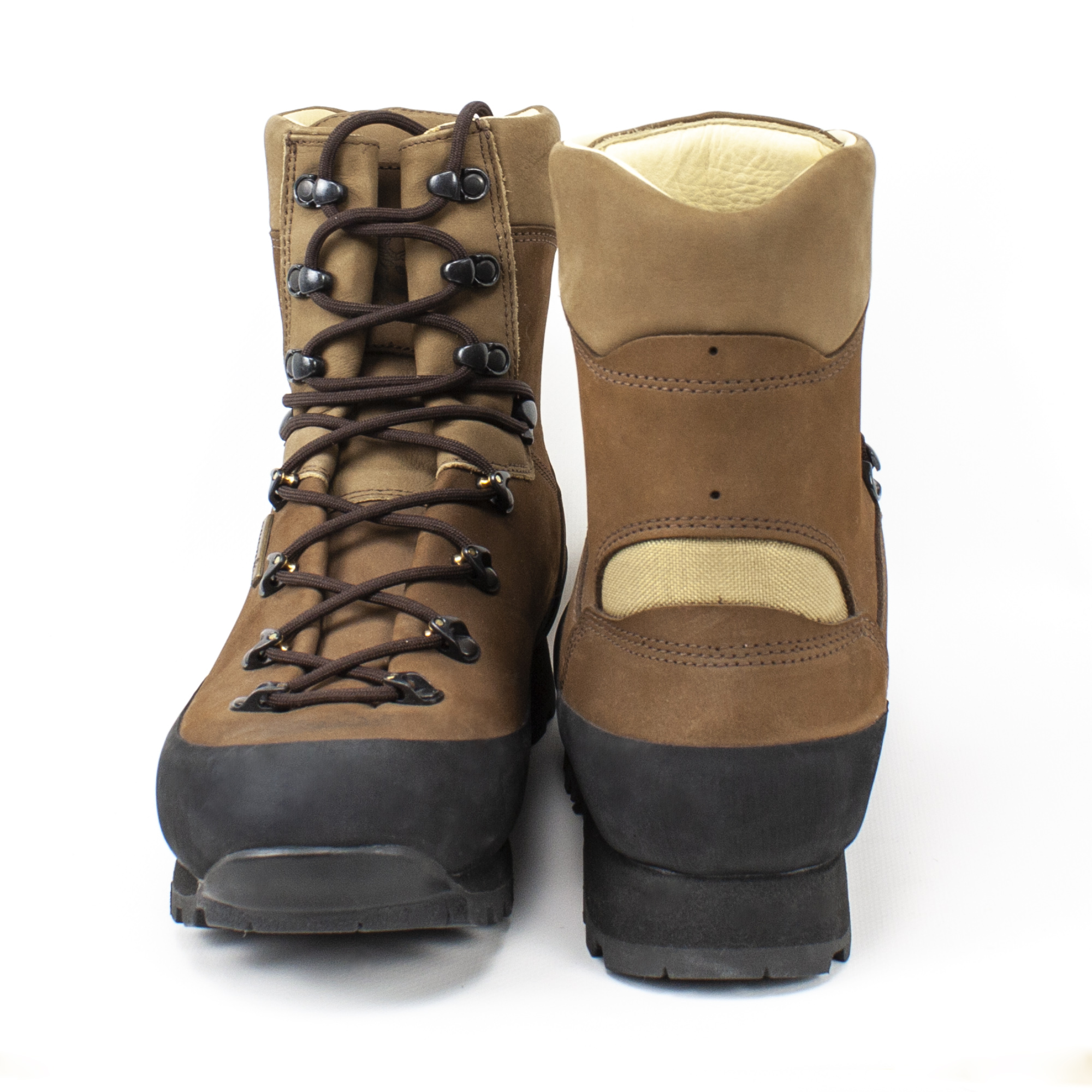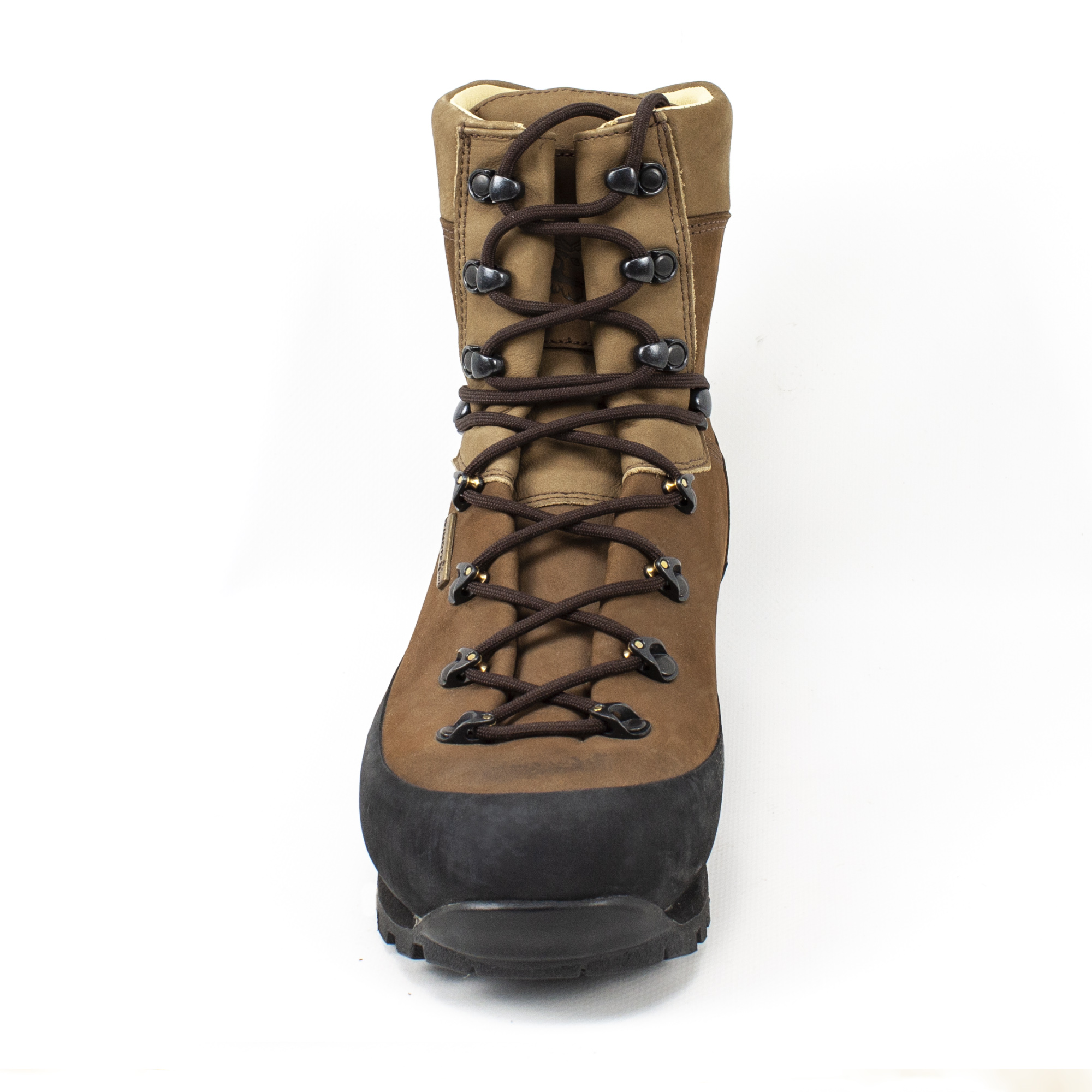 Охотничьи ботинки HL by DIOTTO Nebraska изготовленные из цельного куска водоотталкивающего коричневого нубука с минимальным количеством швов и оснащен дополнительно резиновой лентой по низу ботинка для предотвращения повреждений от курума, острого льда и камней.