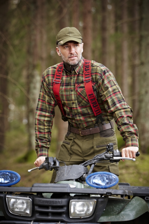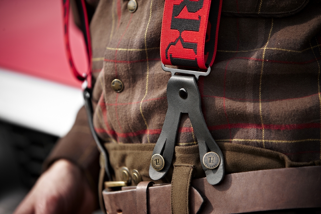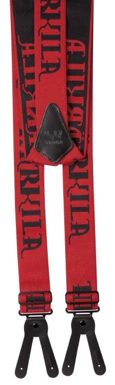 Очень широкие подтяжки на Harkila Carl-August Red на пуговицах для тяжелых брюк.