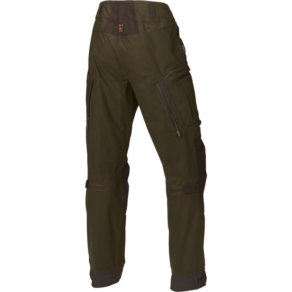 Брюки Harkila Mountain Hunter сделаны из специальной бесшумной ткани. Брюки очень легкие и прочные, два важных качества при охоте в горах, где местность обычно суровая и негостеприимная. На высоте погода может быстро меняться от яркого солнечного света до сильного ливня или снежной бури, поэтому брюки оснащены непродуваемой и водонепроницаемой мембраной GORE-TEX. Эта мембрана не только защищает от непогоды, но также делает костюм Harkila Mountain Hunter дышащим. Ткань брюк также обработана пропиткой DWR (Durable Water Repellent) для придания ей грязе- и водоотталкивающей поверхности. У костюма Harkila Mountain Hunter есть сетчатая подкладка, которая отводит влагу от тела. Брюки имеют два больших кармана спереди, два кармана на бедрах с водонепроницаемыми молниями и встроенный патронташ в правом набедренном кармане.
