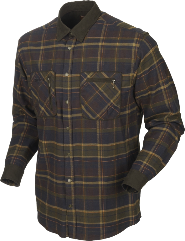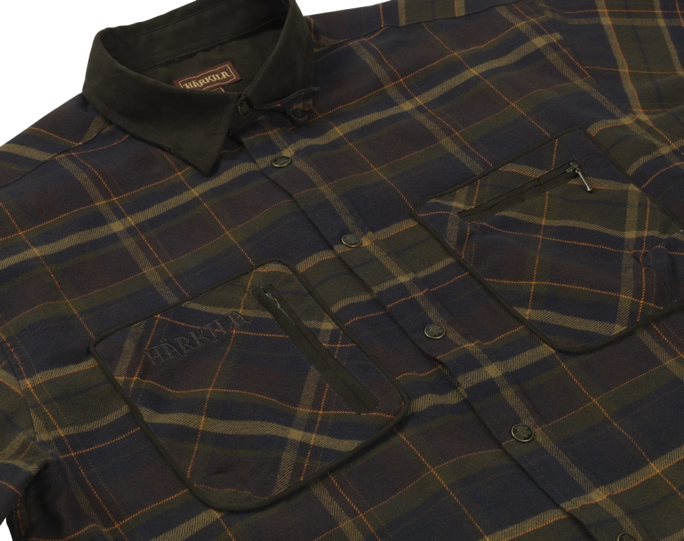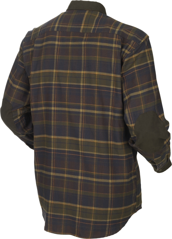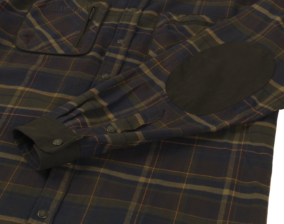 Клетчатая рубашка классического кроя из 100%-го хлопка. Отделка из искусственной замши на на манжетах, локтях и воротнике. Застежки-кнопки и два практичных кармана на молнии.