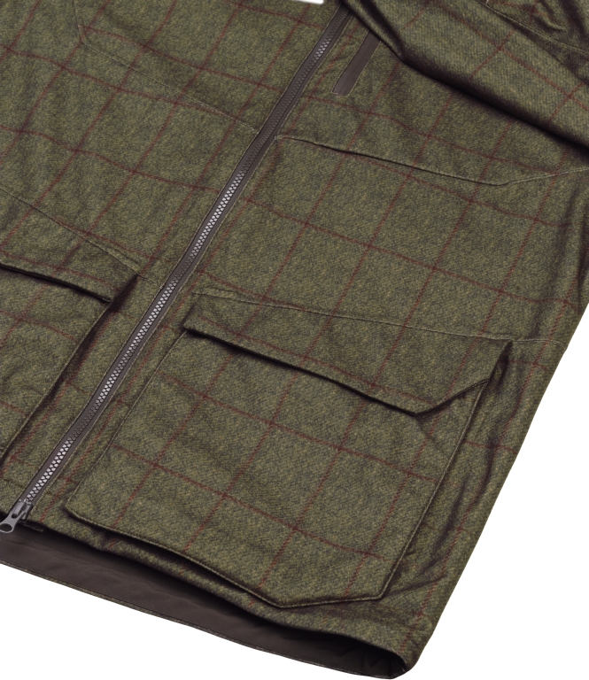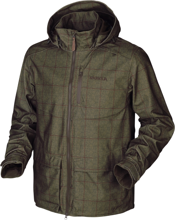 Универсальная мембранная куртка Harkila Stornoway Active из эластичной бесшумной ткани с твидовым рисунком. Этот материал, в отличие от обычного твида, не впитывает воду, поэтому костюм остается легким. Для придания ткани грязе- и водоотталкивающих свойств она также была обработана DWR-пропиткой (Durable Water Repellent). Одежда в коллекции Stornoway изготовлена с использованием новой технологичной мембраны Harkila Weather System (HWS) — бесшумной, ветро- и водонепроницаемой.