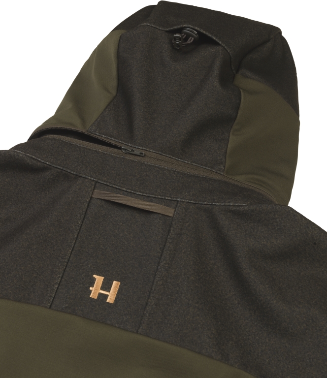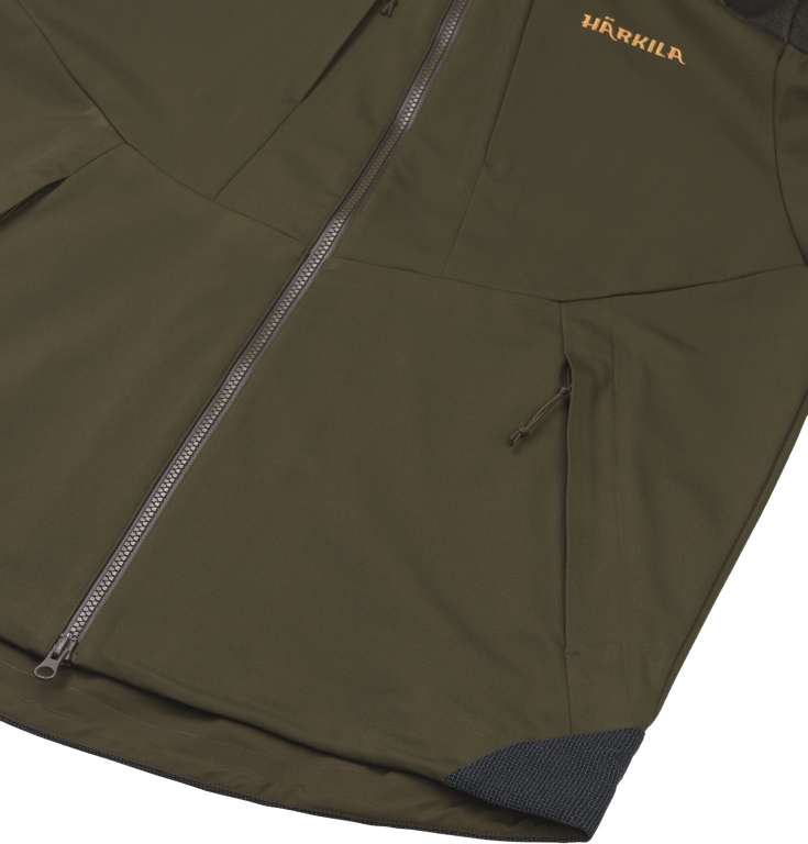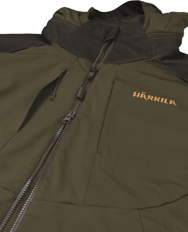 Куртка Harkila Mountain Hunter Hybrid имеет активный крой и изготовлена из дышащей ткани ArcStretch®. Плечи и плечи куртки водонепроницаемы, а встроенная мембрана HSP® Harkila Storm Pro делает ее воздухопроницаемой и ветрозащитной. Куртка также обработана DWR-пропиткой (Durable Water Repellent) для защиты от воды и грязи. Для увеличения прочности в области подмышек и поясницы используется сверхпрочная ткань. Куртка имеет два больших косых кармана на молнии, а также карманы для рации с проушинами для антенн по бокам груди. Внутри есть небольшой сетчатый карман для мобильного телефона. Куртка имеет съемный капюшон, двухстороннюю молнию и регулируемые манжеты. Капюшон и нижний край регулируются с помощью эластичной кулиски.