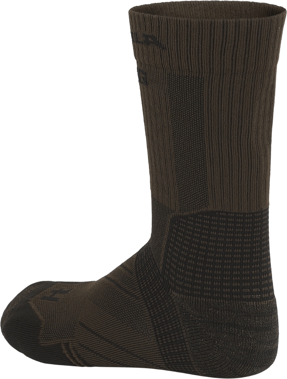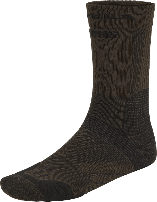 Носки HarkilaTrail изготовлены из легкой, изолирующей и дышащей высокопроизводительной ткани Dryarn с сетками для дополнительной воздухопроницаемости. Это классический дизайн левого / правого носка, и для дополнительного комфорта верхняя часть носка сделана шире и выше, а передняя часть носка связана методом трехмерного плетения. Носок полностью обработан от насекомых защитным покрытием по технологии Vital Protection AntiTick/Mosquito против клещей и комаров.
