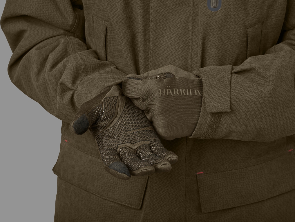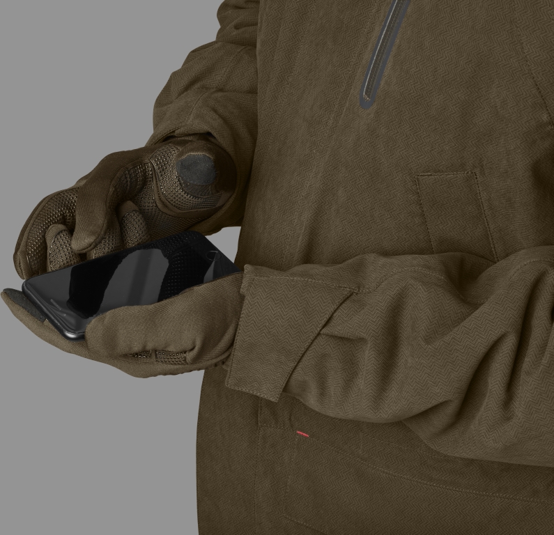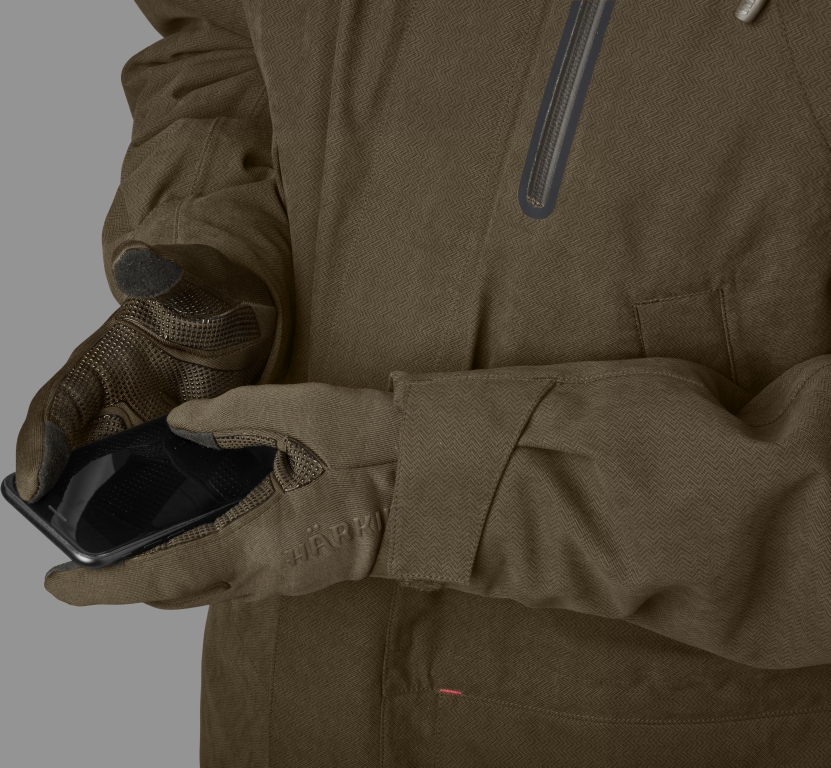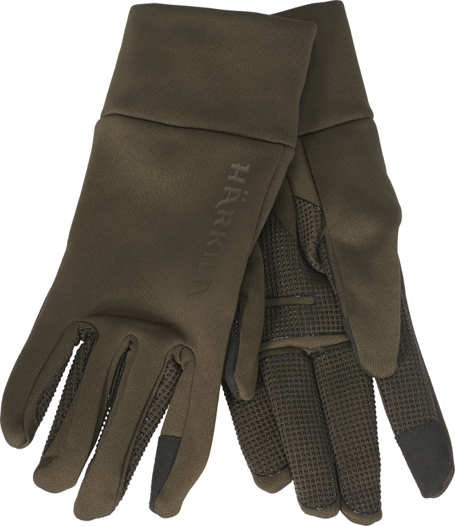Перчатки Harkila Power Stretch изготовлены из быстросохнущей ткани Polartec® Power Stretch®, состоящей из 87% переработанного полиэстера и 13% эластана. Перчатки имеют нескользящее прорезиненное покрытие ладони и пальцев, а в большой и указательный пальцы вшиты вставки, совместимые с сенсорным экраном. Перчатки плотно прилегают к оружию.