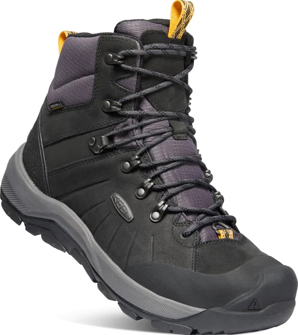 Утепленные зимние ботинки KEEN Revel IV Polar сочетают в себе технологичность и удобство хайкеров с износостойкостью и практичностью повседневной обуви. В данной модели применена трехслойная технология утепления Heat Trapolator с утеплителем KEEN.WARM плотностью 200г, обеспечивающая комфортную эксплуатацию ботинок при температуре до -32°C. Стелька Thermal Heat Shield сохраняет тепло. Устойчивость на скользком снеге и льду обеспечивает подошва KEEN.Polar Traction с 5-миллиметровыми разнонаправленными грунтозацепами. Защиту от влаги и комфорт обеспечивает полностью водонепроницаемая мембрана KEEN.DRY®. Мягкие носки ботинок усилены анатомическими резиновыми накладками для дополнительной прочности и защиты.